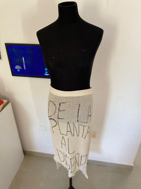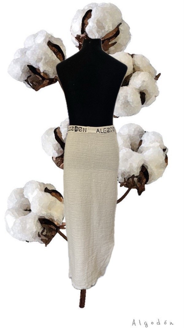 Falda tubo hecha en un crep + morley de algodón [textiles producidos en la provincia del Chaco]